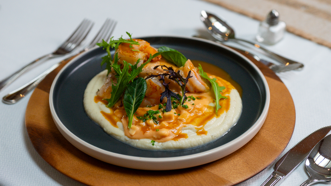 primer tiempo un fresco tártaro de locos y camarones con toques cítricos, realzado con una salsa de gambas. Una preparación con un emplatado perfecto desde la elección en la loza, hasta la composición y orden de cada producto, además de sabores agradables en boca y texturas suaves que transformaron esta entrada en un increíble comienzo.