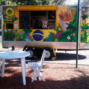 Verde Amarelo es un simpático Foodtruck que te invita a disfrutar de preparaciones típicas de Brasil. El Dani Donoso, llegó en bicicleta a visitarlos a uno de los punto de permisos de circulación que estuvieron en stgo.Ahora Verde Amarelo esta recorriendo ferias y fiestas..