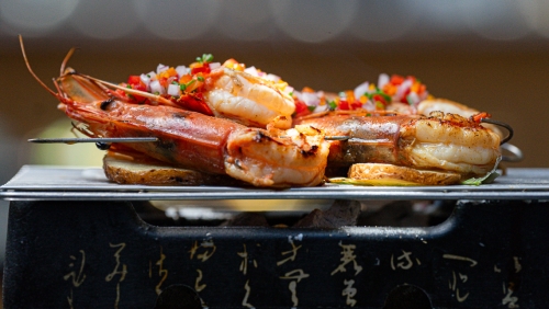 De color rosado intenso característico tras su cocción, su textura firme y jugosa lo hace ideal para preparaciones como ceviches, parrilladas marinas, salteados o caldos. Su apariencia brillante y uniforme indica frescura y alta calidad, siendo un ingrediente valorado tanto en cocina tradicional como gourmet.