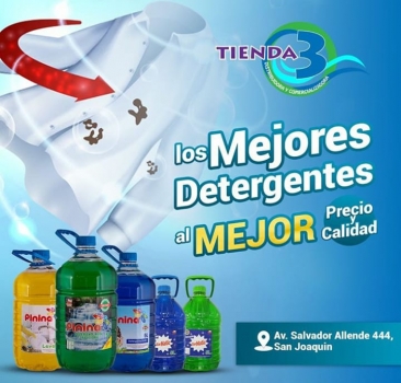 Tienda Tres es una distribuidora y comercializadora dedicada a la venta de productos de aseo al por mayor y al detalle, destacándose por la variedad y calidad de sus productos a precios económicos, como también, por la atención personalizada, amable, cercana y rápida a sus clientes preocupándonos siempre de entregar un buen servicio con excelente información.