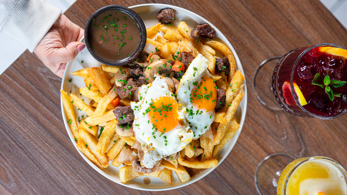 Chorrillana Burguiñona, con 500 gramos de papas fritas naturales, carne estofada al vino tinto, champiñones, cebollita perla y para coronar, dos huevos fritos. Una versión distinta de la clásica preparación que fue furor en el J. Cruz de Valparaíso, pero acá viene acompañada de un pocillo con el caldo de la carne para untar o simplemente para beberlo a sorbos. Puro placer.