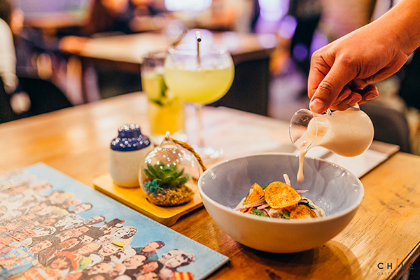 Con una increíble vista de toda la bahía de Valparaíso y sus cerros icónicos, La Azotea ofrece una carta de autor con tintes a cocina mediterránea e inglesa pero sin perder la identidad Chilena, palabras de su propio Chef Lorenzo. Pudimos picotear sus solicitadas Papas Sour Beacon, degustar de entrada un exquisito y fresco Ceviche con leche de tigre y maíz cancha para terminar con un delicioso plato principal de Plateada y Choclo con hongos Chilenos.